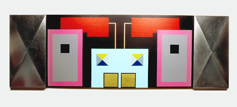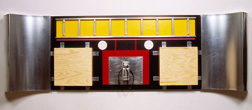 maalattu puu, sinkitty pelti, 122 x 314 x 24 cm